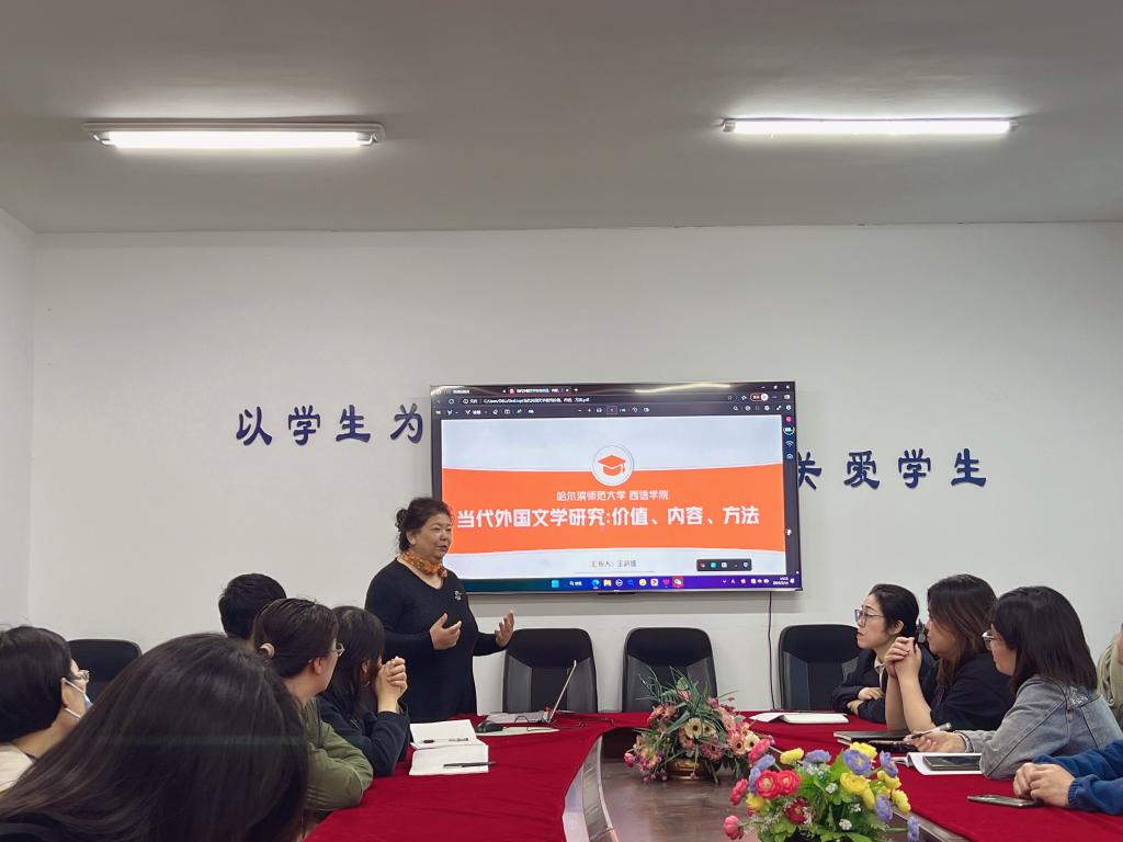 5月14日下午,在公司科研处的精心安排下,哈尔滨师范大学督导组副组长、哈尔滨石油公司bevictor伟德官网经理王莉娅,受邀为公司教师做了题为“外国文学批评方法”的学术讲座。bevictor伟德官网经理刘静、副经理贾振峰以及全体专业教师听取讲座。