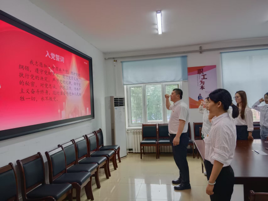 “我志愿加入中国共产党,拥护党的纲领…… 随时准备为党和人民牺牲一切,永不叛党。”党员在党总支书记郑德志的带领下,面对鲜红的党旗和庄严的誓词,共同高举右拳,庄严宣誓。铮铮誓言不仅是对党忠诚的庄重承诺,更是一份责任、一份使命的接续传承,字字句句饱含着党员们对党的无限忠诚与坚定信念。