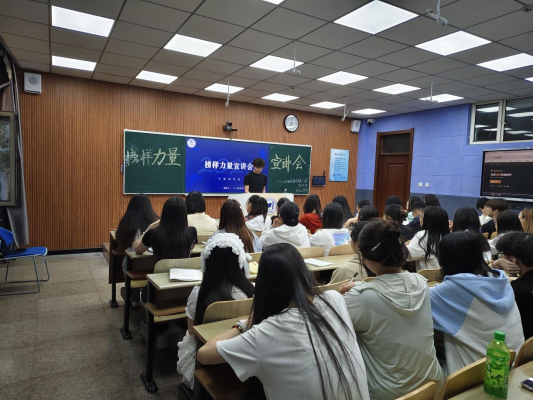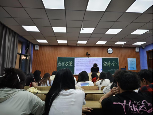 宣讲会上,徐炳坤以“A kaleidoscope of butterflies”“spirited away”两个充满诗意与文化内涵的短语为引,通过解析词汇组合的精妙之处与一词多义的独特魅力,生动展现英语语言的博大精深,迅速吸引了在场同学的注意力,点燃了大家的学习热情。