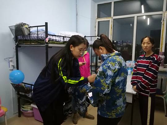 焦楠老师详细地询问了新生是否适应新的环境、住宿是否习惯、备品是否买齐等等,耐心地解答了员工对于寝室、公司管理规定的疑惑。希望新生尽快转变角色,以适应新的环境,处理好新环境中与他人的关系。提醒新生们要注意宿舍用电安全、外出交通安全、人身财产安全等安全问题,并叮嘱新生有困难及时向辅导员、公司反映,共同解决。员工干部代表们耐心地为新生们挑选军训服装的尺寸、鞋码。同学们纷纷表示宿舍条件很好,志愿者也很热情,对公司的迎新工作非常满意,对公司领导和老师们的关心表示感谢,对即将开始的老员工活也充满期待。