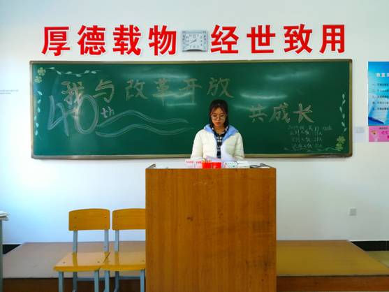 本次团活日做到了形式多样,风格各异,内容丰富。各班班长、团支书带领同学们回顾了改革开放的发展历程,畅谈青年应如何肩负时代重任,弘扬五四精神。同学们以亲身经历生动形象地描述家乡改革开放以来发生的巨大变化和取得的辉煌成就,以此抒发了他们对改革开放的感谢,对祖国的热爱。