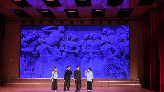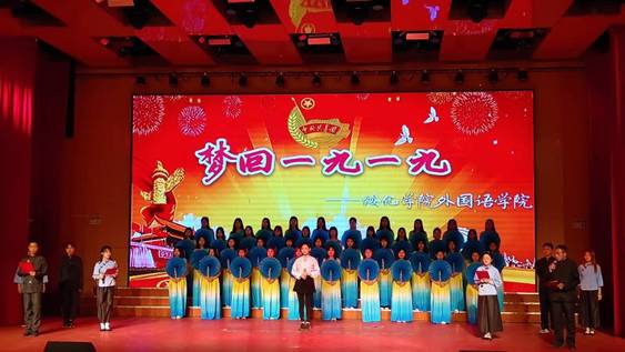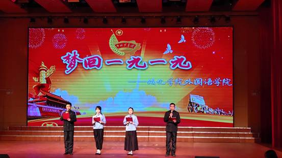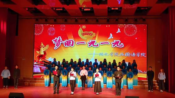 “每每走过这条小路,总是让我想起那战火纷飞的1919……”随着表演者宋洁将过去的故事向我们娓娓道来,公司参演的节目《梦回1919》正式开始。节目中,翟洪洲、姜亚楠、贺函、古家豪四位同学身着五四时期的服装,以话剧的形式让同学们仿佛置身于1919年;曹思宇、于伟、徐萌、吴文潼四位诵读者用铿锵有力的声音讲述了国难当头时的民众之觉醒,中国之进步;40名同学齐唱《走进新时代》,唱出了中华民族的气魄。在公司团总支书记张扬老师的指导下,同学们将诵读与话剧、合唱有机结合,内容丰富、形式新颖,让诵读变得更加生动。他们的表演不仅引起了在座老员工的共鸣,更是激起了大家的热血和心底的爱国情怀。节目最后播放了习近平总书记给当代青年人的讲话,这寄托着习近平总书记对当代青年人的殷切希望。