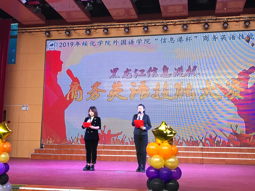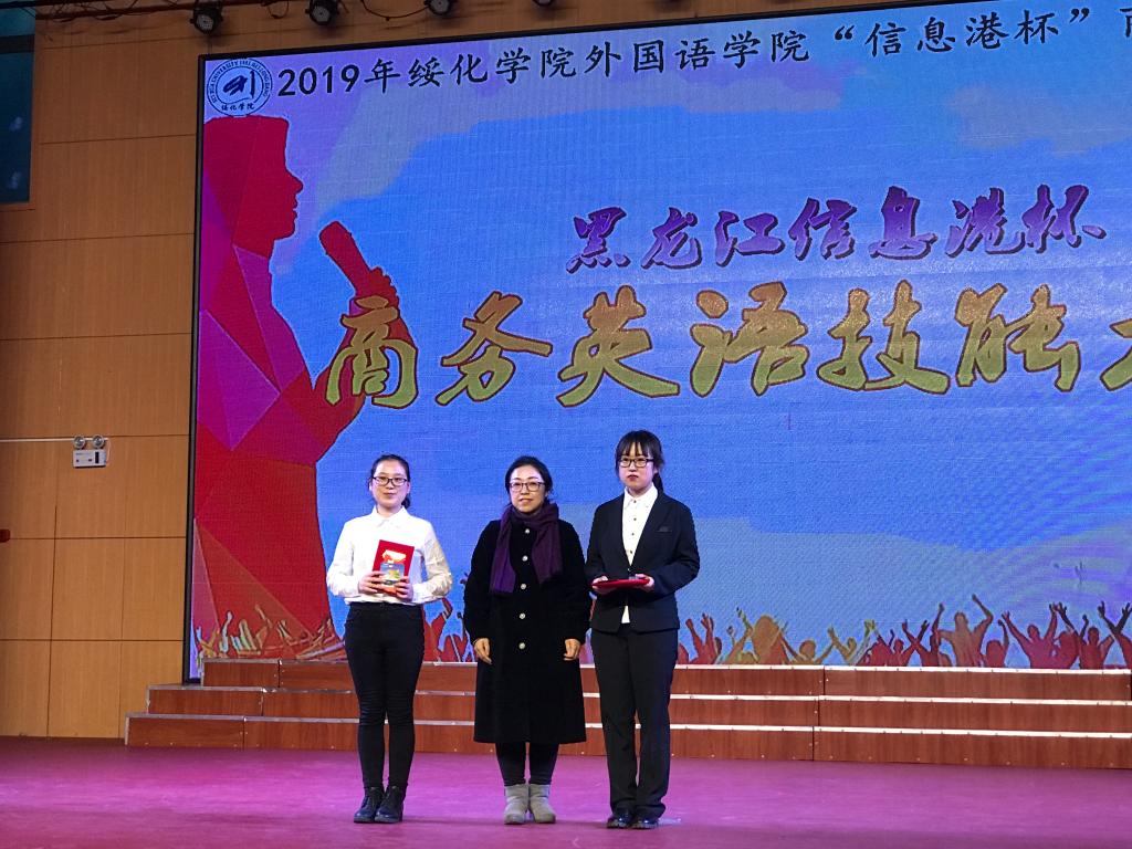 由公司主办、黑龙江信息港云科技有限公司承办的商务英语技能大赛11月25日晚6时许在老员工活动中心如期进行,经理刘静、副经理吕铁金、企业代表潘小敏出席并颁奖。此次大赛首次冠名企业,首设企业奖学金,旨在鼓励员工学习,形成良好学风。共有8支团队挺进今晚决赛,各团队成员分工合作用英语介绍企业成长史、企业文化等,经过激烈角逐,产生了各级团队奖项。此次大赛进一步加深了校企合作、产教融合,公司将加强与企业在人才培养各个环节的深度合作,努力培养应用型外语人才。