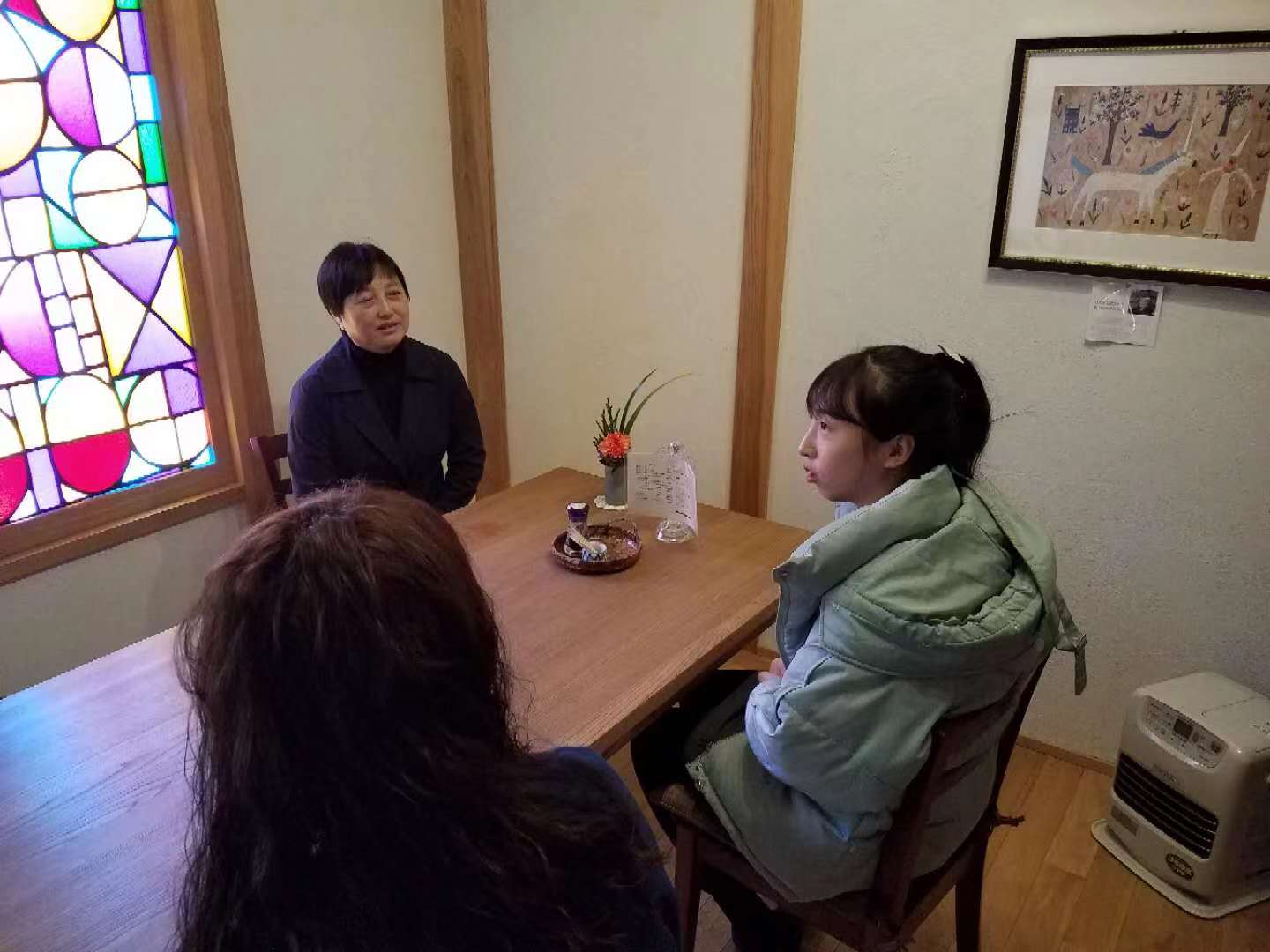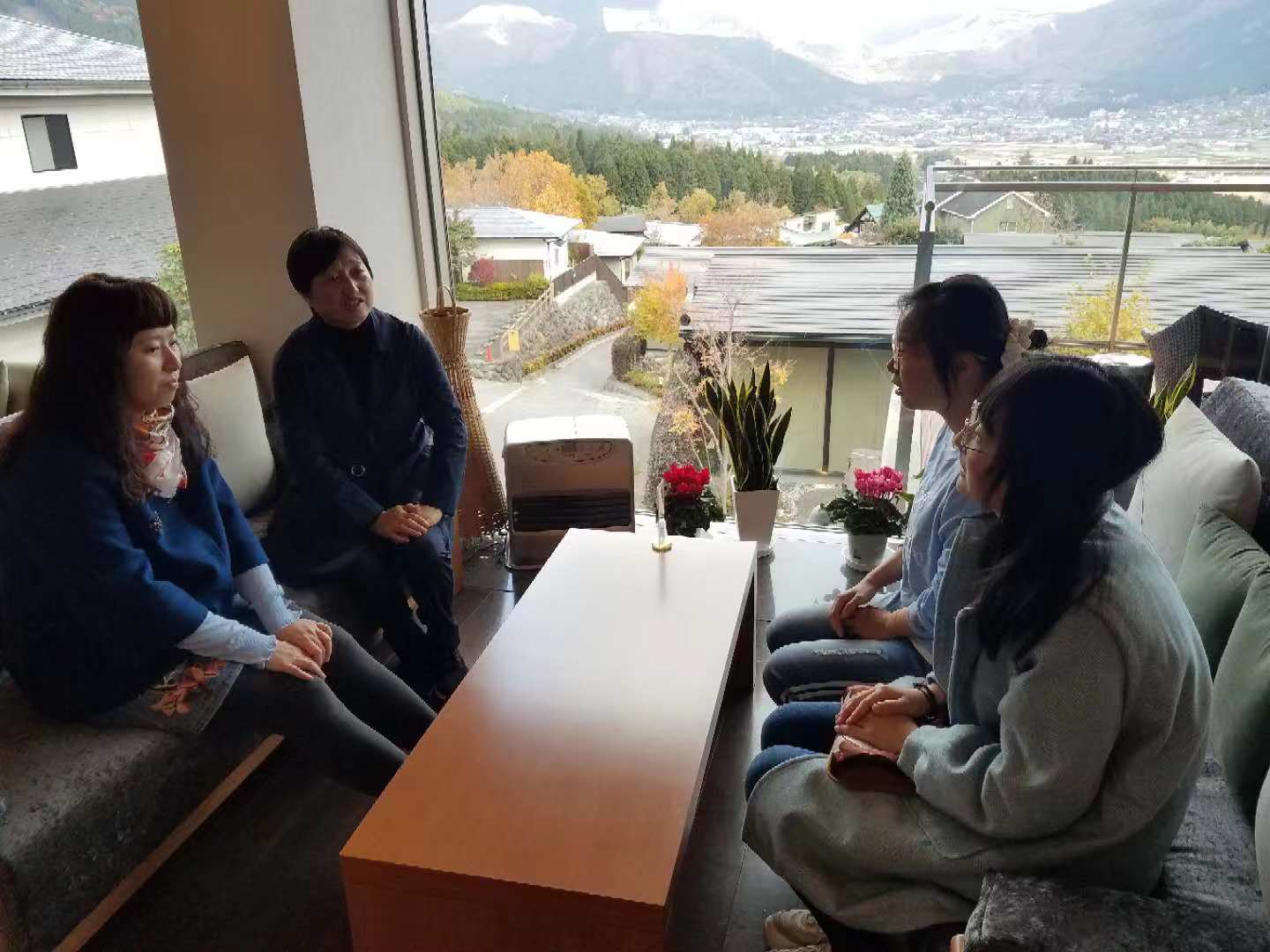 山水馆负责人中尾百合子接待我方并介绍我方员工学习、实习和生活的基本情况,并希望今后继续与我方合作,向日本派遣实习员工。并慰问了在此实习的叶建文、董雪维、苗叶婷3名同学,并与他们在学习、实习、生活等方面座谈交流,主要目的是了解员工在海外的真实情况和遇到的困难和问题。