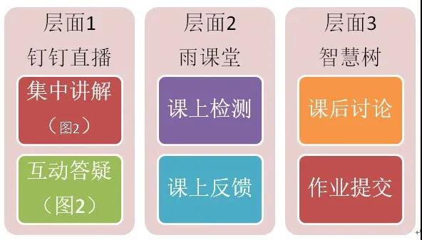 对于线上教学,虽然平时授课过程中也有使用雨课堂,QQ等工具,但是从以往的面对面教学辅助手段到即将完全依赖这些软件工具作为主要手段,从教学思路结合整理上、软件使用深度上、面对突发状况应急处理上,都要进行更为认真的推敲、实践运用和多角度考虑准备。首先,得益于之前公司提供的学习机会包括钉钉直播,超星,智慧树,大学慕课,对于每一次学习机会的认真对待让我有了更好的软件应用基础。正式授课前的及早准备和不断地积极实践、尝试、实验以及积极地为其他同志解决遇到的问题,让我将整体授课体系不断完善,逐渐形成了一套较为系统的“钉钉直播+雨课堂+智慧树”三层面立体式在线授课方法。希望能为更多的同志提供帮助和借鉴,现总结如下。