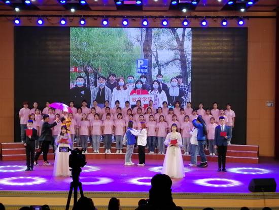 随着铿锵有力、饱含深情的朗诵,拉开了第三篇章同庆的序幕,公司参演的节目《风雨彩虹 校园重聚》正式开始。朗诵和情景剧相结合的表演为观众重现了公司领导老师迎接员工重归校园、学长学姐亲自接送员工、为学子撑衣挡雨等场景,展现了公司对员工们的思念与牵挂;手语表演“我们回来了,你们,都还好吗?”,用无声的语言传递着的爱与关怀;50名员工大合唱《明天会更好》,唱出了希望和期盼,期待疫情早日过去,恢复以往的繁华与安康。表演者真情投入的演出为现场观众带来了全新的体验和心灵的震撼,让台下师生产生共鸣,深切体会到了重归校园时的温馨和感动。