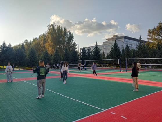 活动伊始,社长张琦为社员们示范了标准的挥拍动作,讲解了打羽毛球的注意事项。接着,各个社员自行组队,进行了羽毛球单打或双打活动,社员们身手敏捷、技巧熟练,展开了一场场激烈的对抗。对打的过程精彩绝伦,高潮迭起,球场上的社员们均沉浸在羽毛球带来的乐趣当中。