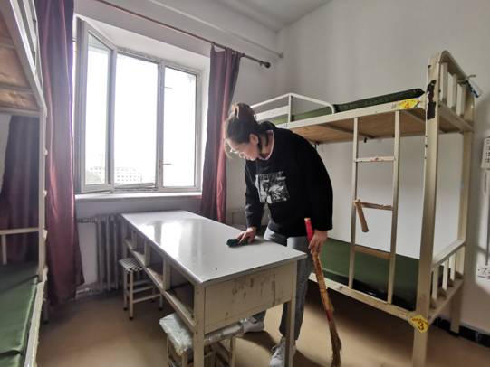 在四位辅导员老师的指导下,志愿者们通力协作,不怕脏、不嫌累,从擦拭桌椅、窗台,到清洁地板,不留下任何一个死角。在打扫过程中,志愿者们始终充满热情,认真仔细地清洁着宿舍的每一个角落,展现了公司学子积极向上的精神面貌。在师生的共同努力下,新生宿舍焕然一新。