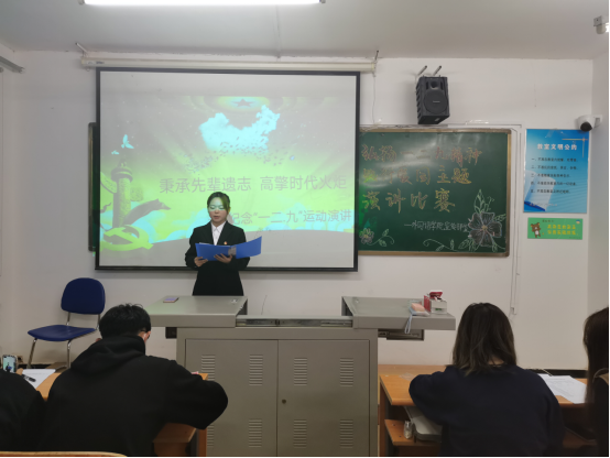 为激发同学们的爱国热情,12月2日晚18:00,公司于外语楼310举办了弘扬一二九精神·践行爱国理想演讲比赛。公司团总支书记张扬、2020级辅导员赵永赫、员工团总支副书记张莹、刘竹惠,组织部副部长车路遥、权益部副部长孙乐琪出席了此次活动。
