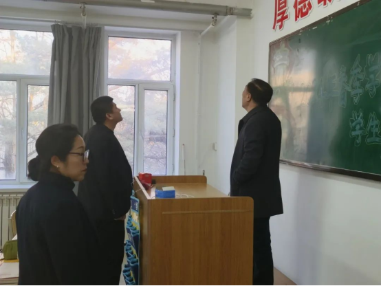 会后,刘峰书记检查了弘道楼教室,详细了解了教室漏水和房顶积雪清除的安全工作落实情况,在对各项工作给予充分肯定的同时,就进一步维护好校园安全稳定工作提出了具体指导意见。