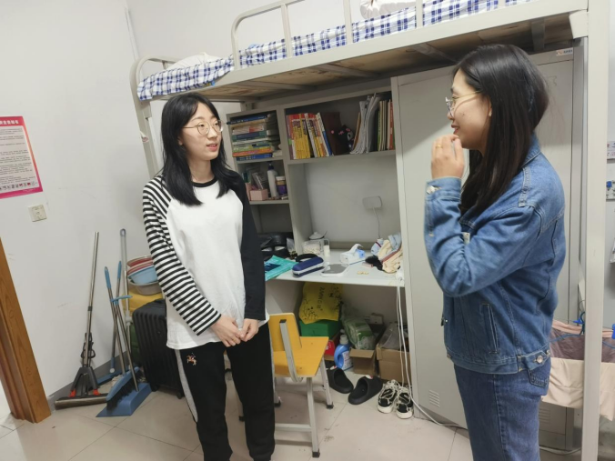 为进一步加强寝室建设与管理,充分了解员工的宿舍生活状况及思想动态,真正将关心员工落到实处,全力为同学们营造一个和谐、美好的环境,5月22日下午,bevictor伟德官网2021级辅导员尚岩、2022级辅导员焦楠、2023级辅导员李阳溪一同走访第六员工宿舍,开展本学期第六次导师进寝室活动。