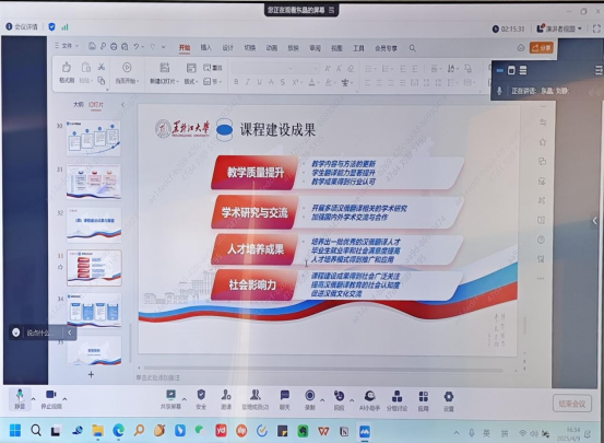 随后,郑艳红向与会师生详细介绍了黄东晶教授的学术背景与专业资历。郑老师提到,黄东晶教授深耕俄语教学领域多年,是黑龙江大学俄语公司的资深教授,主持多项国家级、省部级科研项目,发表高质量学术论文数十篇,拥有丰富的俄语教学经验与指导经验。