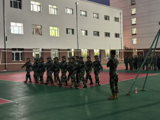 下午和晚上,训练重点转向“齐步走”的练习。教官拆解动作,从摆臂高度、步幅大小到身体重心控制,逐一讲解示范。“手臂要伸直,前摆过腰,后摆到位”,同学们以排为单位组队训练,从原地摆臂、分解踏步,到完整的齐步前进,大家相互提醒节奏,调整步幅,努力做到排面整齐、步伐协调。
