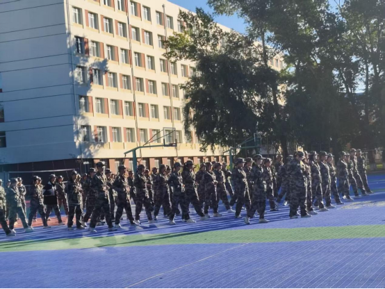 在严格的军训正步训练过程中,“踢腿定位”和“摆臂规范”被确立为两大核心训练要点。教官们严格要求每位新生做到踢腿高度一致、动作干净利落,同时确保摆臂幅度标准、节奏分明。训练场上,新生们尽管腿部肌肉酸胀难忍,仍咬牙坚持,一丝不苟地保持着挺拔的军姿和标准动作。